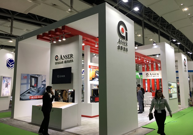 契合金泰噴碼品牌形象和產(chǎn)品特性,采用開放式的效果,再搭配燈具燈光的效果,襯托出展位現(xiàn)代、突出一種現(xiàn)代、高端的時(shí)尚品味。