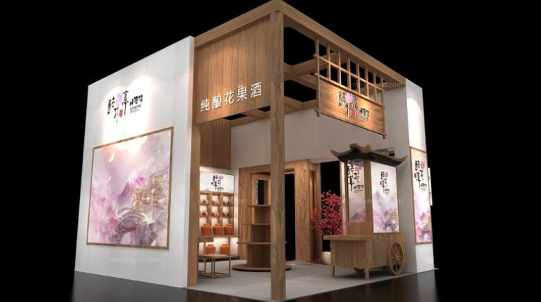 契合醉花亭的品牌形象和產品特性,采用矩形結構,再搭配燈具燈光的效果,襯托出展位大氣、豪華的氛圍,突出一種簡約、時尚的品味。