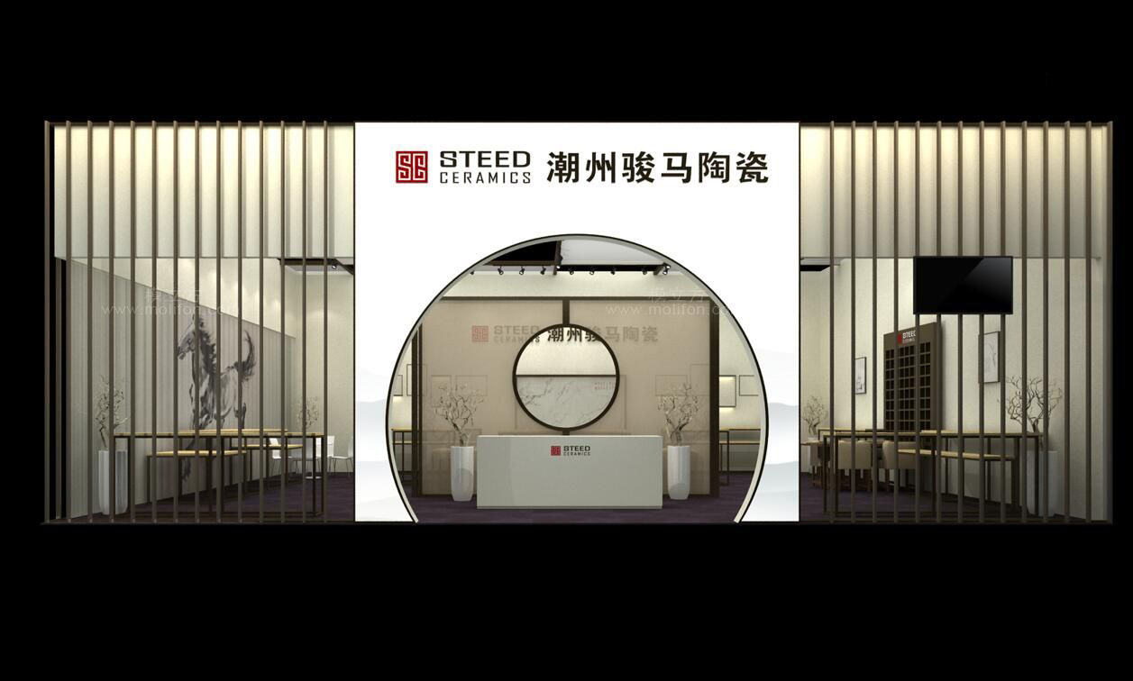 契合駿馬陶瓷的品牌形象和產(chǎn)品特性,采用矩形結(jié)構(gòu),再搭配燈具燈光的效果,襯托出展位大氣、豪華的氛圍,突出一種簡約、時(shí)尚的品味。