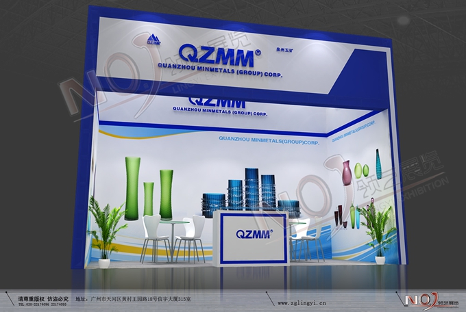 契合泉州五礦集團的品牌形象和產(chǎn)品特性,采用矩形結(jié)構(gòu),再搭配燈具燈光的效果,襯托出展位高端、時尚的氛圍,突出一種現(xiàn)代、大氣的時尚品味。
