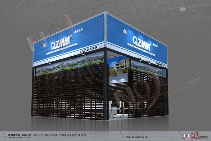 契合泉州五礦集團(tuán)的品牌形象和產(chǎn)品特性,采用矩形結(jié)構(gòu),再搭配燈具燈光的效果,襯托出展位高端、時(shí)尚的氛圍,突出一種現(xiàn)代、大氣的時(shí)尚品味。