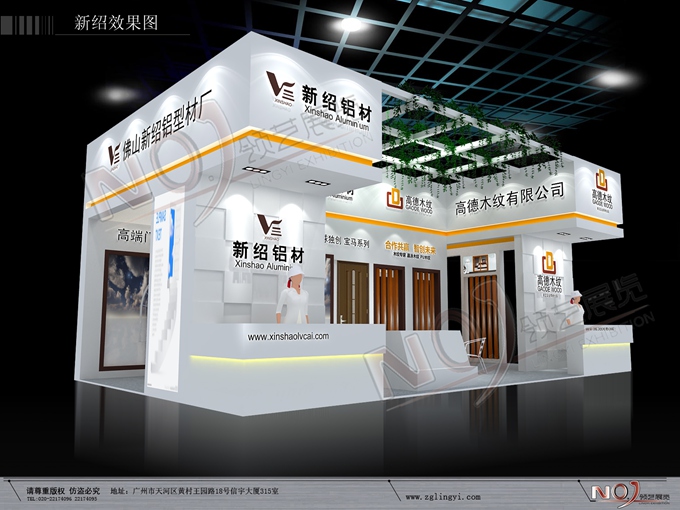 契合新邵鋁業(yè)的品牌形象和產(chǎn)品特性,采用框型結(jié)構(gòu),再搭配燈具燈光的效果,襯托出展位簡約、便捷的氛圍,突出一種精致、簡約的時尚品味。