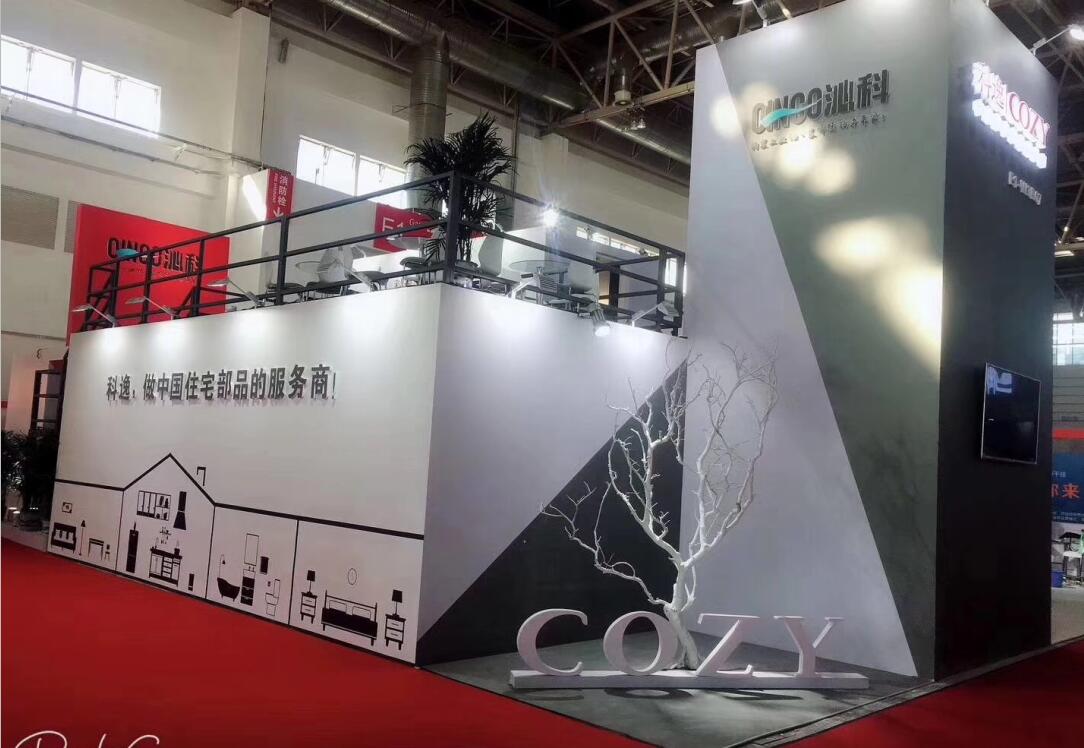 契合蘇州科逸品牌形象和產品特性,運用雙層不對襯的效果。再搭配植物、燈具燈光的效果,襯托出展位現(xiàn)代、突出一種現(xiàn)代、高端的時尚品味。
