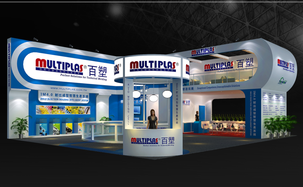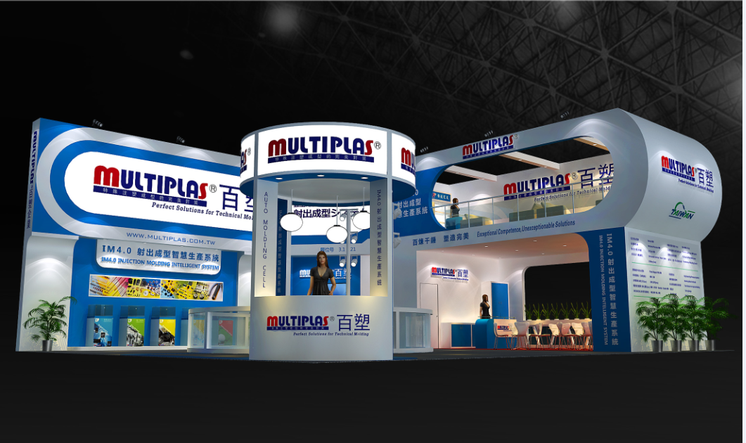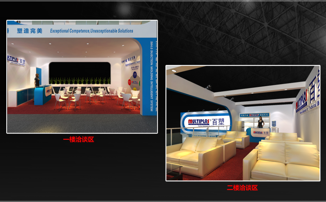 契合百塑的品牌形象和產(chǎn)品特性,采用曲線、框型結(jié)構(gòu),再搭配燈具燈光的效果,襯托出展位簡(jiǎn)約、融合的氛圍,突出一種高端、舒適的時(shí)尚品味。