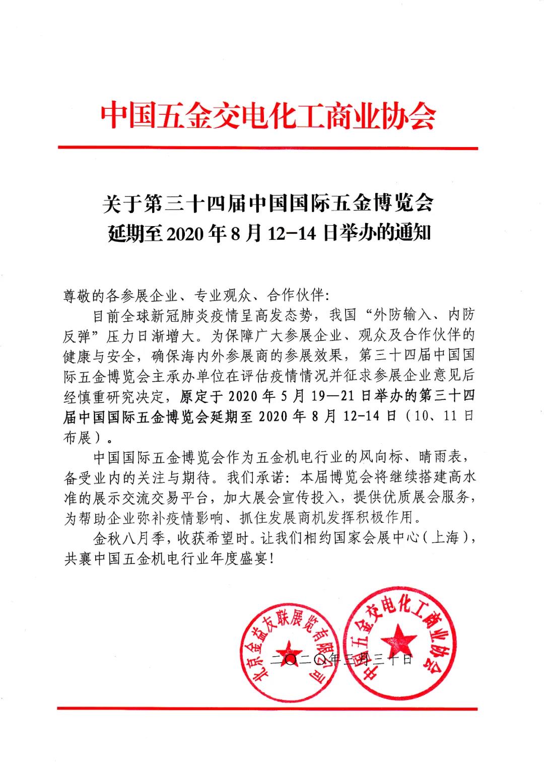 根據(jù)五金展設(shè)計搭建公司領(lǐng)藝展覽了解到,第三十四屆中國國際五金博覽會延期至2020年8月12-14日舉辦。如需五金展設(shè)計請聯(lián)系領(lǐng)藝展覽,希望我們能在五金展搭建上為您添磚加瓦,祝各位朋友收獲多多,滿載而歸!