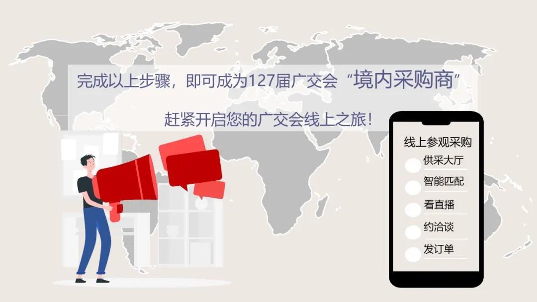 境內(nèi)采購商注冊(cè)請(qǐng)登錄廣交會(huì)官網(wǎng):http://www.cantonfair.org.cn