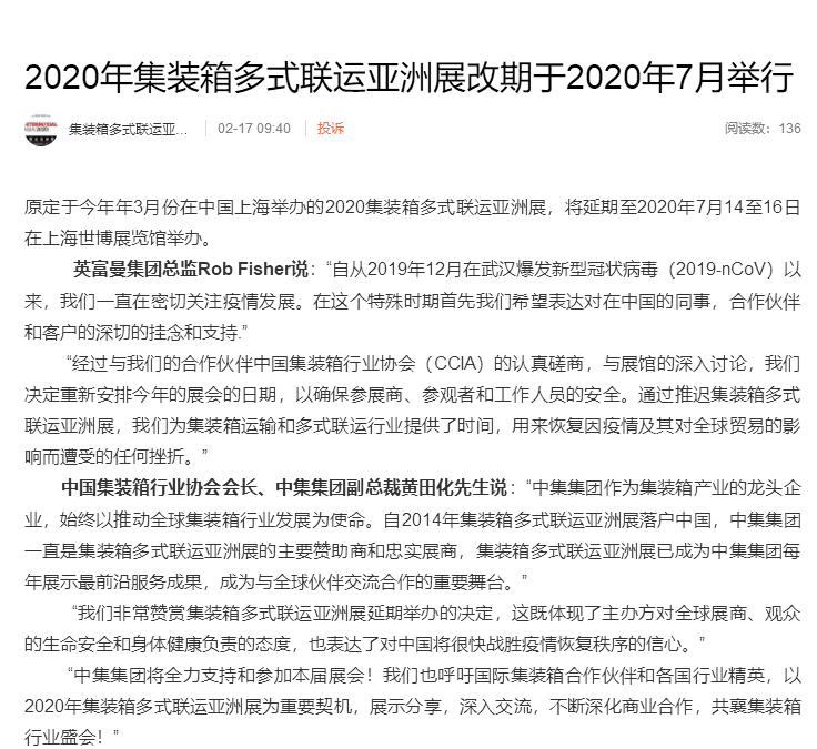 根據(jù)上海集裝箱展設(shè)計搭建公司領(lǐng)藝展覽解到,原定于今年年3月份在中國上海舉辦的2020集裝箱多式聯(lián)運(yùn)亞洲展,將延期至2020年7月14至16日在上海世博展覽館舉辦。如需上海集裝箱展設(shè)計請聯(lián)系領(lǐng)藝展覽,希望我們能在上海集裝箱展搭建上為您添磚加瓦,祝各位朋友收獲多多,滿載而歸!