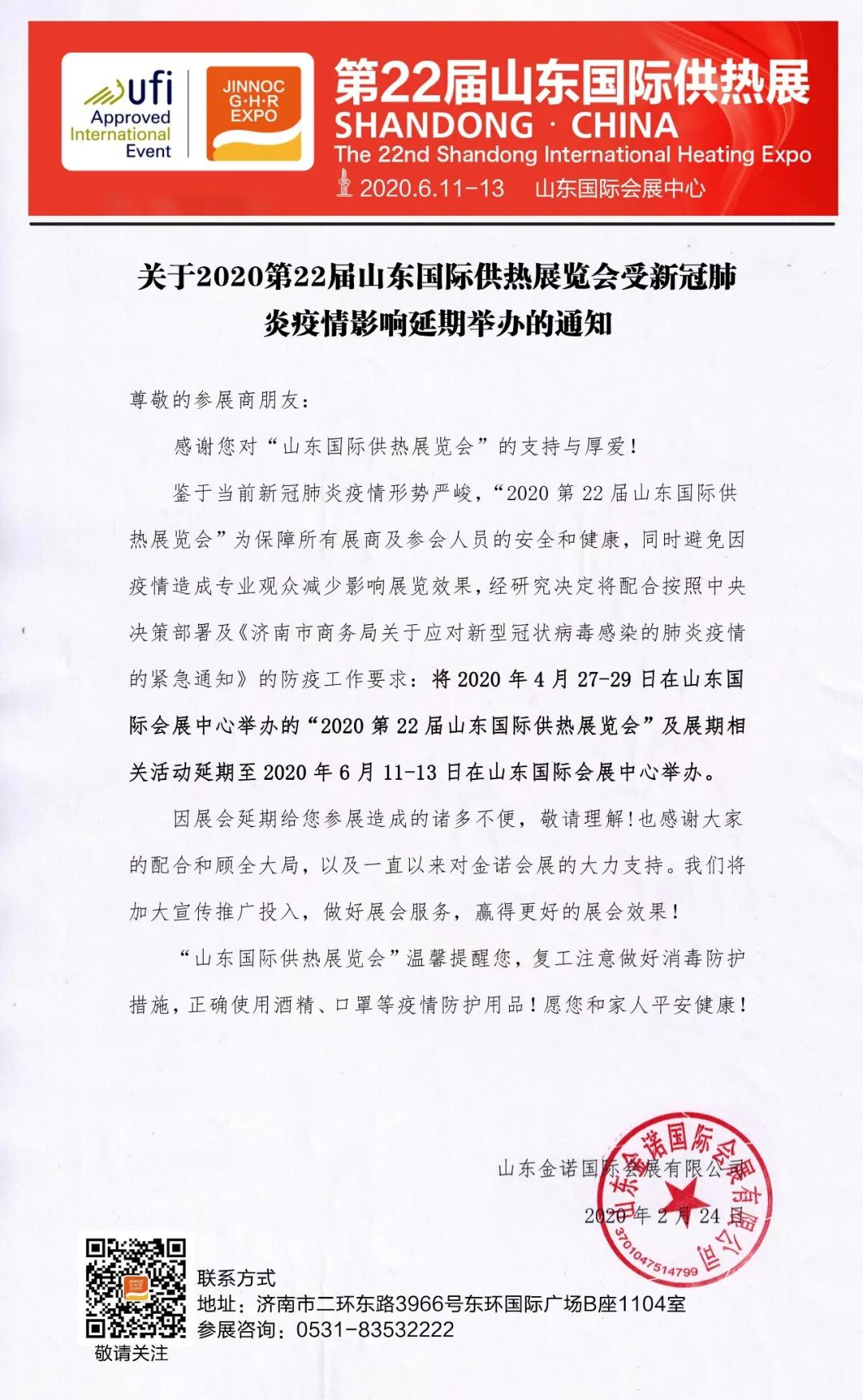 根據(jù)供熱展設(shè)計搭建公司領(lǐng)藝展覽了解到,受新冠病毒感染的肺炎疫情影響,第22屆山東國際供熱展延期至6月11到13日在濟南盛大召開。如需供熱展設(shè)計請聯(lián)系領(lǐng)藝展覽,希望我們能在供熱展搭建上為您添磚加瓦,祝各位朋友收獲多多,滿載而歸!