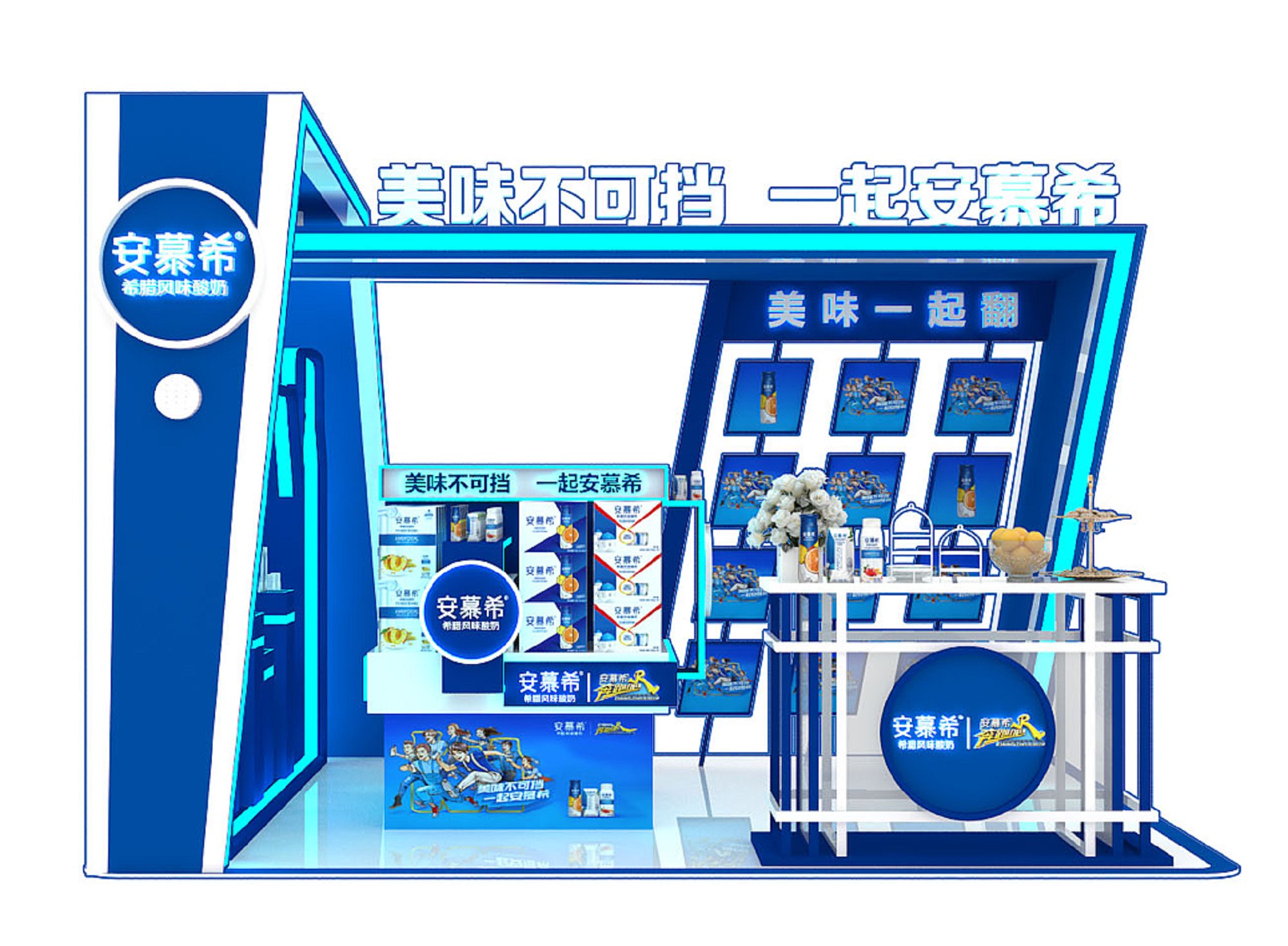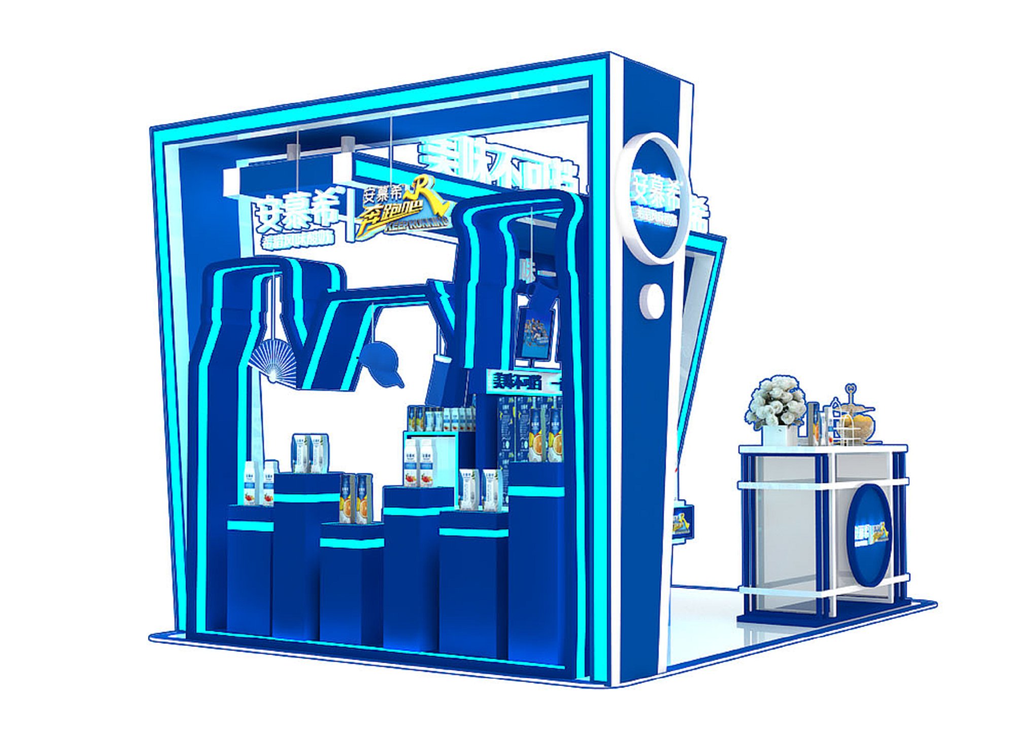 巧妙的運用藍(lán)色作搭配,著重突出品牌和產(chǎn)品的展示,使整個展位時尚新穎巨有活力。